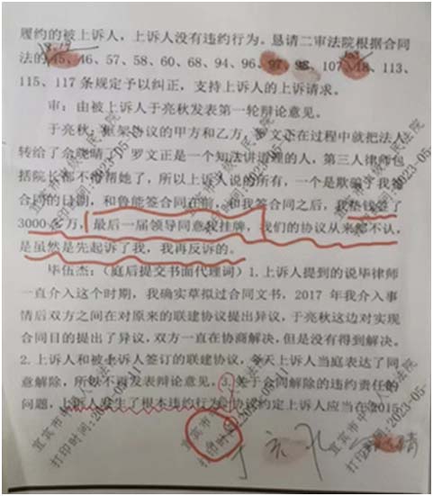 “鲁能最后一届领导同意我挂牌”,鲁能凭什么可以同意一个合同外的人的要求,而不按合同约定在2018年3月报告出来后5天内签定正式转让协议而要解除原协议?去销售,不成又要挂牌?还以挂牌必须解除原协议为由,骗罗某正70岁生日当天在他们写好的“申请”上悄悄盖章,并于某秋以此申请虚假陈述:“协议”由于医院的“申请”早已解除而反诉胜诉。宜宾鲁能2022年以此到法院确认,被宜宾市中院二审“未协商一致”,适用法律错误。但二审又用了《合同法》第94条“鲁能行驶单方解除权”维持原判。如此捏造债务,让人感到不可思议;“我们的协议从来都不认”,明目张胆在法庭上挑战国家法律,更是让人震惊不已。