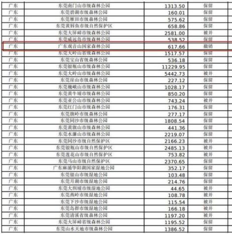 根据《全国自然保护地整合优化方案》,撤销的自然保护地大多为无规划范围、无功能分区、无管理机构,无法实际落地管理,且存在大面积的村庄、永久基本农田、集体人工商品林,资源保护价值较低,不具备原生性、典型性和代表性特征,无明确保护对象等情况。显而易见,作为拥有国家自然保护地资质的广东观音山森林公园,其拥有雄厚的绿色生态资源,具备鲜明的动植物多样性、独特性和典型性,是广东其他地区尤其是东莞地区不能比拟的;其边界是大致清晰的,有经纬图,里面存在的原有村庄和耕地等等都是当初国家林业局批准成立国家级公园时就