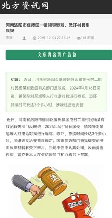 河南洛阳市偃师区一镇领导辱骂、恐吓村 近日,河南省洛阳市偃师区缑氏镇金屯村二组村民杨某有致函有关部门反映说:2024年4月16日深夜,镇领导刘某旭等人打电话对我进行辱骂、恐吓,持续时间长达3个多小时,涉嫌违反治...