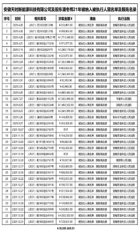 公开资料显示,安徽天时新能源科技有限公司成立于2015年12月25日,注册地位于安徽省宣城经济技术开发区科技园B22幢,法定代表人潘某辉(2020年3月变更前为杨某),注册资本10000万元,属于自然人投资或控股的有限责任公司。公司存在多起司法案件、被执行记录及股权冻结信息,涉及建设工程合同纠纷及限制高消费等风险 。