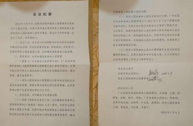 2018 年 3 月 9 日,广东省国有林场和森林公园管理局为使观音山国家森林公园修编工作按时完成,组织东莞市林业局、观音山国家森林公园、广东省森林公园协会等部门召开了联合工作会议并形成一致意见:由观音山国家森林公园提出申请,东莞市林业局协调观音山国家森林公园和石新社区等关联方完成国家森林公园经营范围的具体落界。并由东莞市林业局主动督导、协调和指导观音山国家森林公园完成总体规划修编工作。