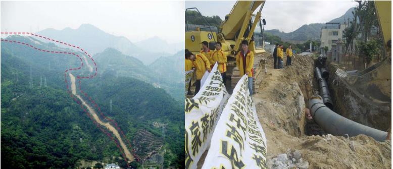 1、中石油西气东输二线广深支线(东段)东莞市樟木头镇观音山施工路段工程违法项目,据 2008 年 9 月份国家环境保护部对该工程项目的环评和批复显示,输气管道线路是绕过观音山国家森林公园施工的,而中石油天然气公司却擅自改变审批方案,在未经观音山国家森林公园同意、无赔偿方案的情况下,组织工人及大型开挖机械进入公园内核心景区,进行暴力施工,以“大开挖”的方式,推平森林,剖开山体,铺设了一条长 3 公里、宽30 米的天然气管道线路,破坏森林面积近 300 亩,使国家森林公园的生态环境和森林资源破坏严重,公园作为林地的管理方至今未得到赔偿。