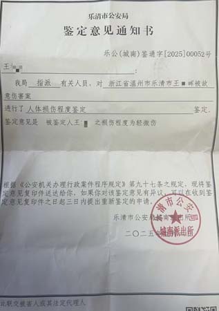 公平正义,国之基址。近日,浙江省温州市乐清市一民营企业负责人王某辉致函有关部门,反映因当地交通综合执法人员锁喉执法给其造成轻微伤,至今三个多月没有得到公正解决的问...